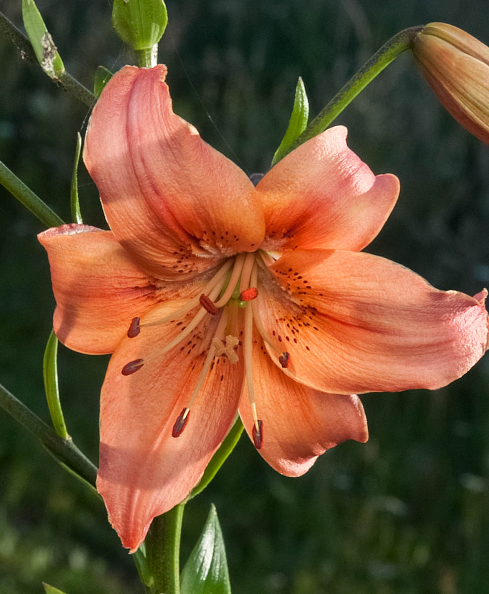 Uz sāniem vērsti aprikozu rozā ziedi.