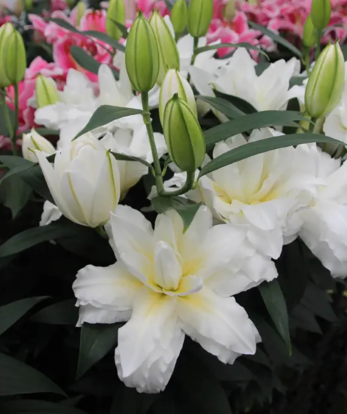 Pildītā austrumlilija - Vletter en den Haan Beheer B.V. Balti, pildīti ziedi ar krēmdzeltenu ēnojumu zieda centrā, smaržīga.