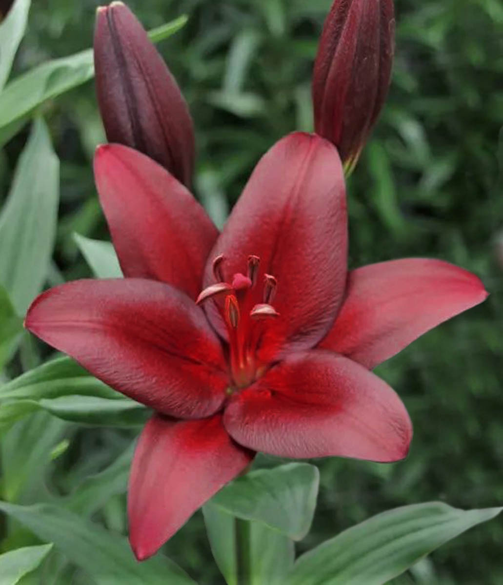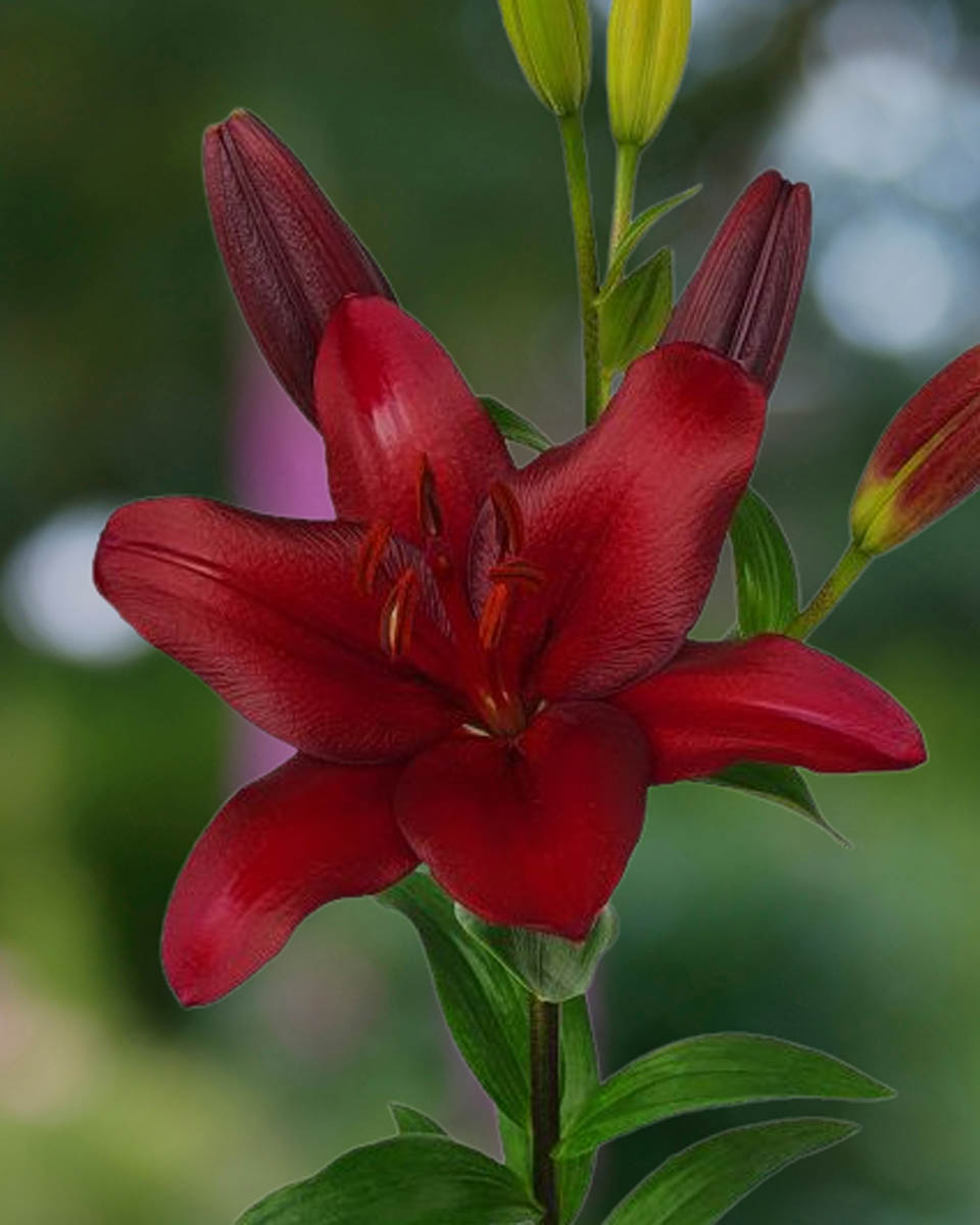 Tumši sarkana. Augstums 120 - 130 cm.