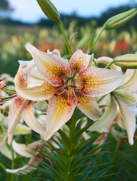 Lieli krēmkrāsas ziedi ar dzeltenīgu ēnojumu vidusdaļā un ļoti sīku sarkanbrūnu "Tango" punktējumu, kas koncentrējas centrālajā daļā. Labi aug. Augstums 100 cm, ziedu skaits 9 - 11, zieda diametrs 17 cm.