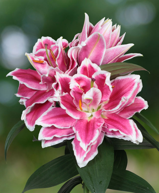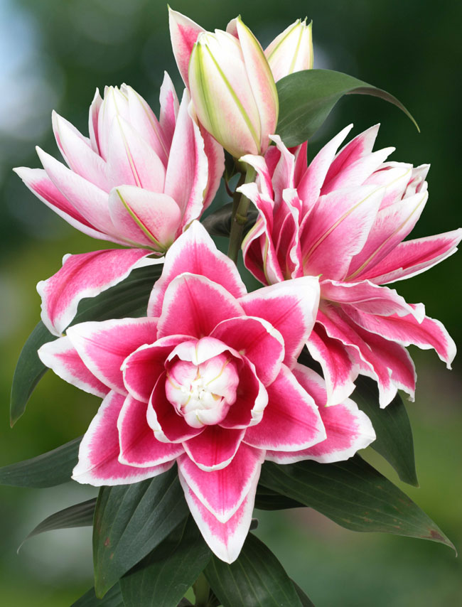 Aveņrozā ziedi ar baltu apmali. Augstums 50 - 60 cm, 4-6 ziedi. Smaržīga.