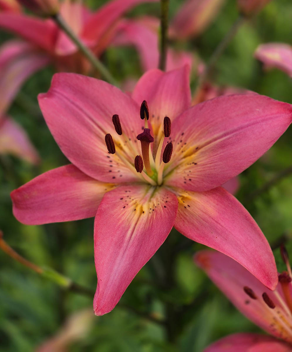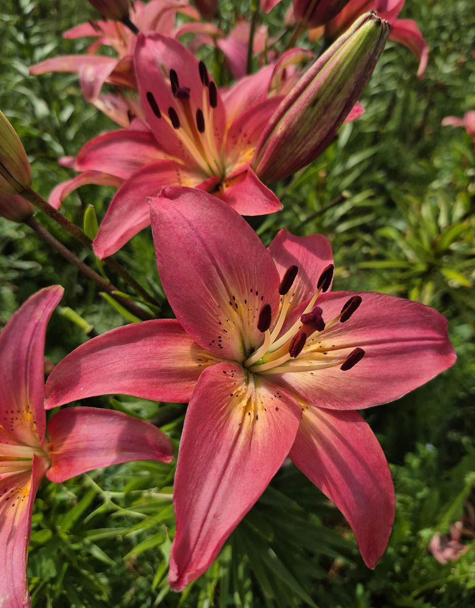 Āzijas lilija - autors G. Grants - 2022. Rozā, zvaigžņveida ziedi ar aprikozu oranžu ēnojumu centrā. Augstums ap 90 cm.